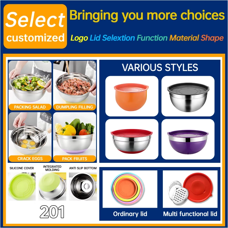 Bulk Mixing Bowls Stainless Steel, New Korean Multi-Size Cooking Bowl Silver Gold Custom