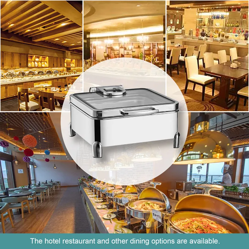 Panoramic Glass Viewing Lid: Large transparent tempered glass panel allows clear food display without opening the lid, preserving heat and moisture while enhancing buffet presentation.